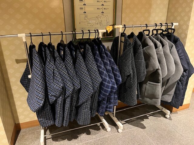 1階フロント横  外出・露天風呂行の寒さをしのぐ丹前(今の時期だけ)