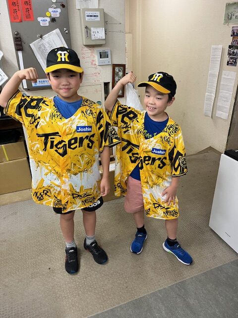 阪神タイガ~スの帽子をかぶって来てくれました